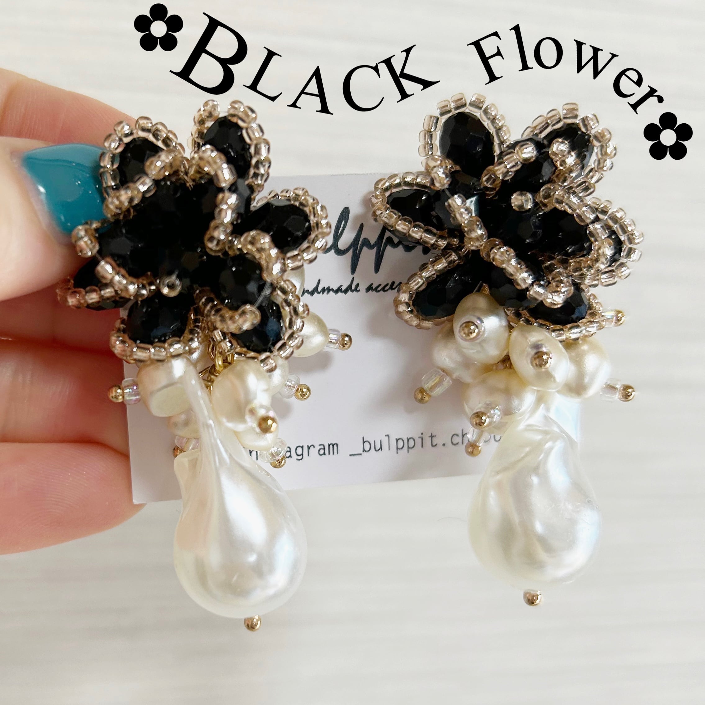 ワイヤー入りガラスボール×花の大ぶりピアス