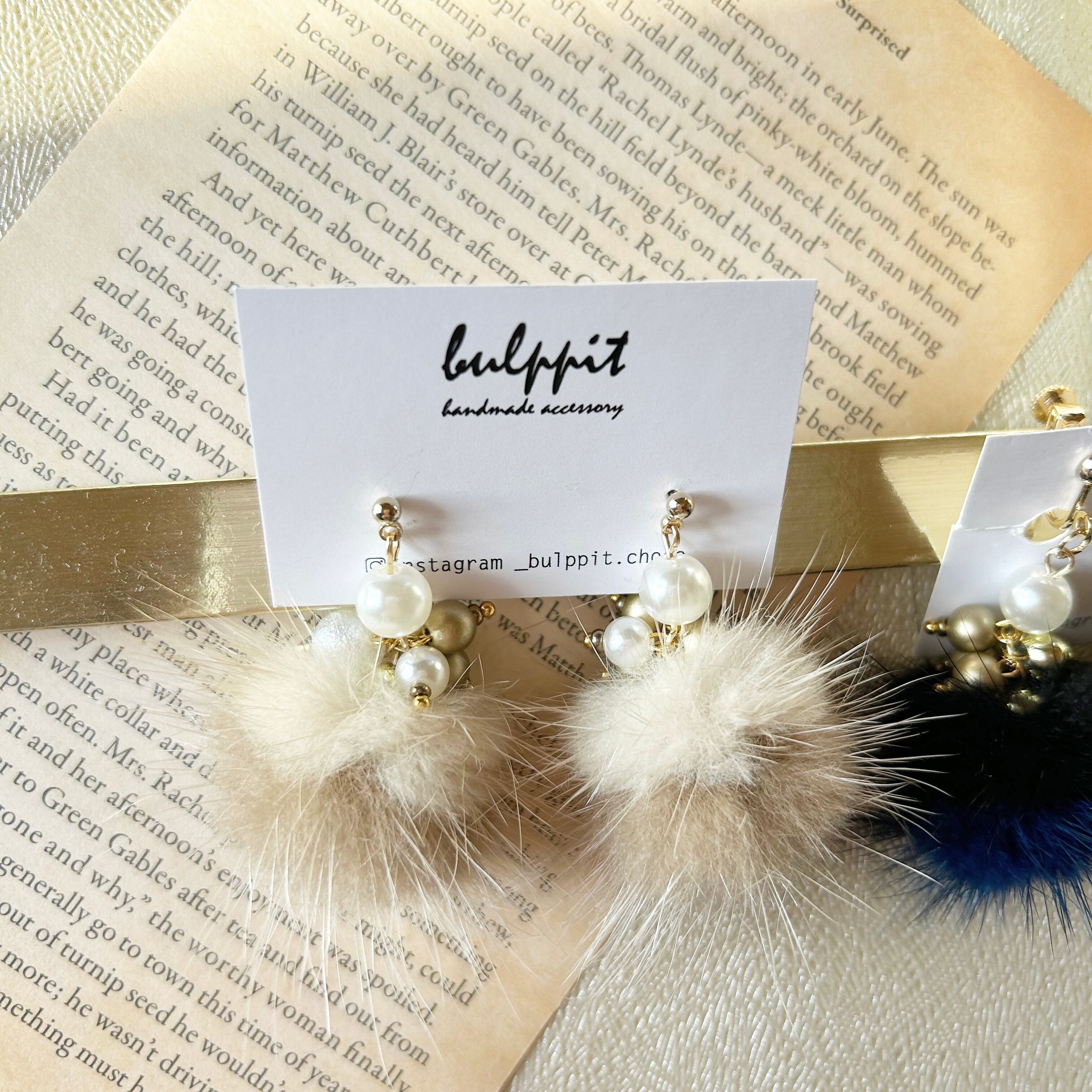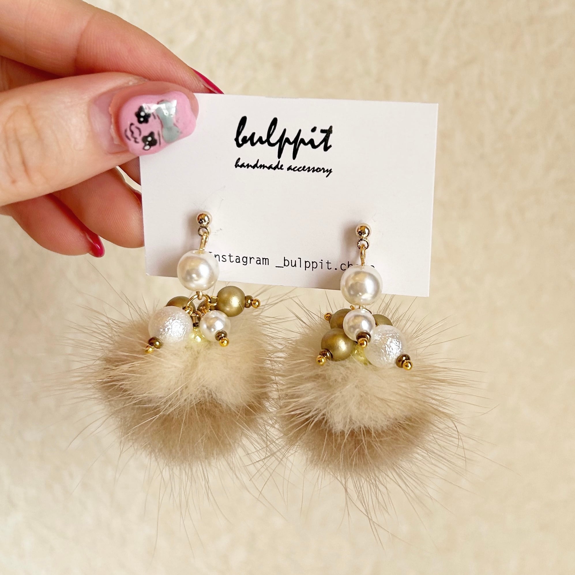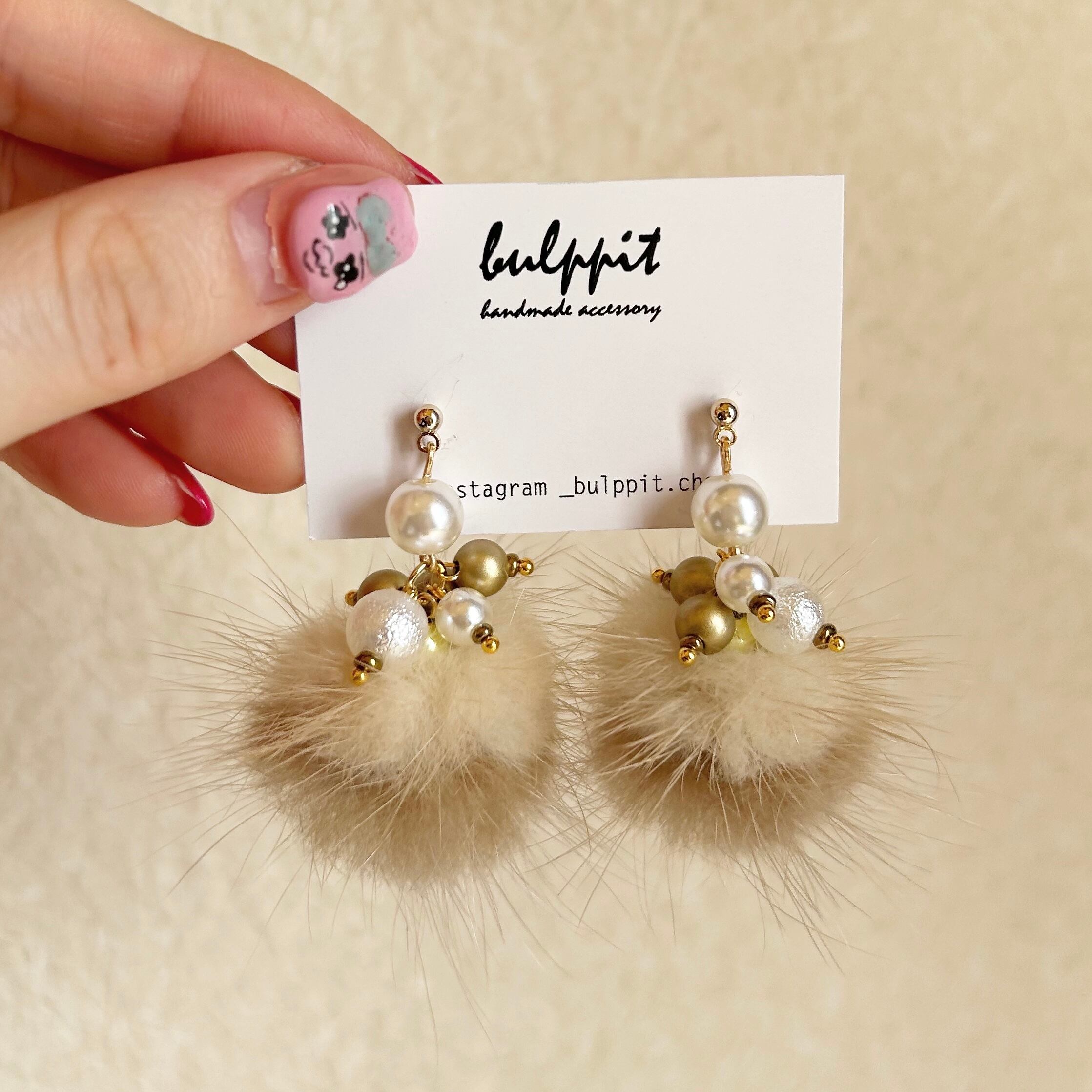 バイカラーのふわふわファーが可愛いアクセサリー。